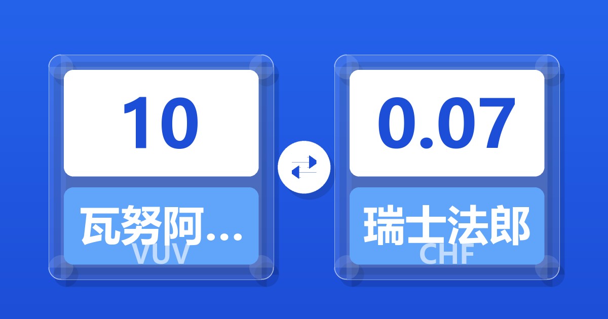 10 瓦努阿图瓦图 (VUV) = 0.07 瑞士法郎 (CHF)