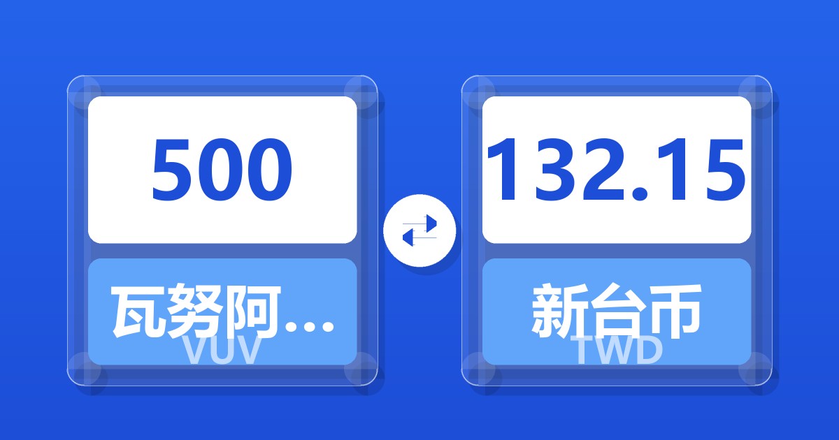 500 瓦努阿图瓦图 (VUV) = 132.15 新台币 (TWD)