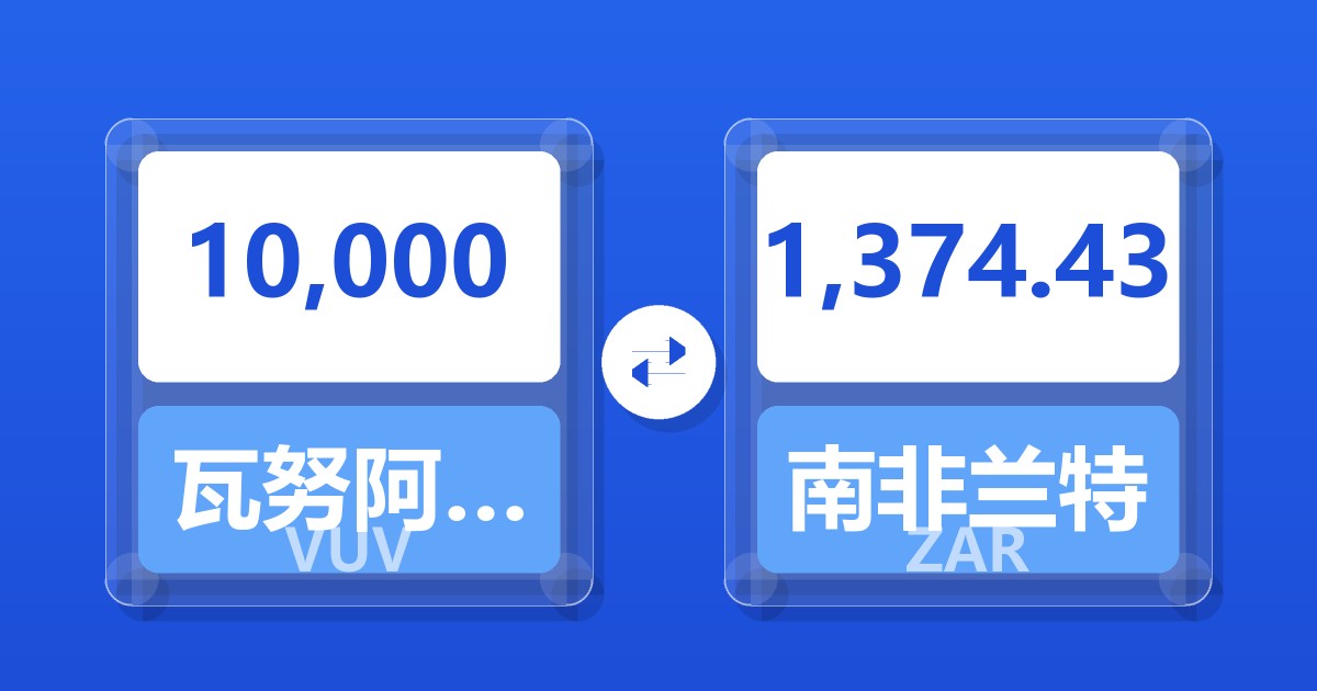 10,000 瓦努阿图瓦图 (VUV) = 1,364.91 南非兰特 (ZAR)