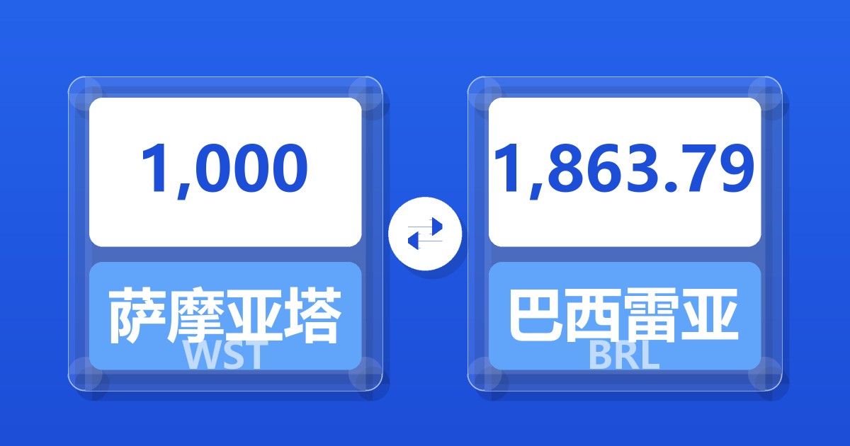1,000 萨摩亚塔拉 (WST) = 1,860.50 巴西雷亚尔 (BRL)