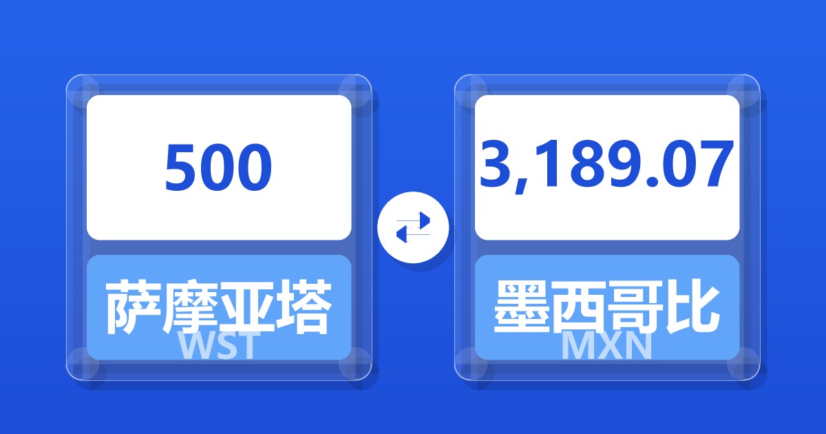 500 萨摩亚塔拉 (WST) = 3,178.61 墨西哥比索 (MXN)