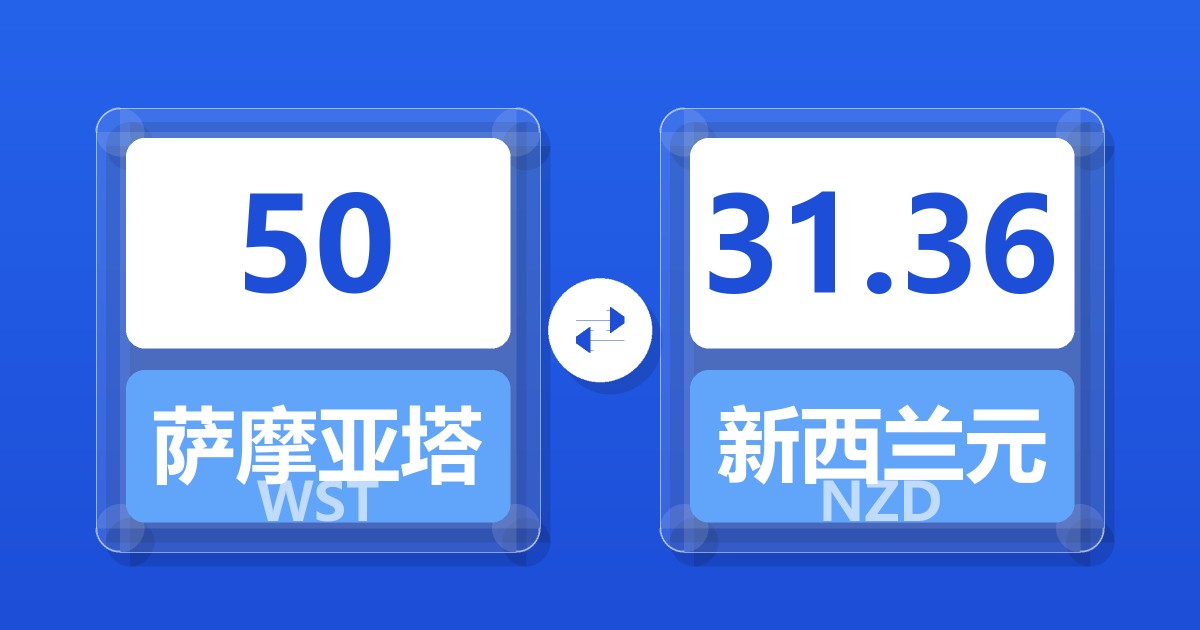 50 萨摩亚塔拉 (WST) = 31.29 新西兰元 (NZD)