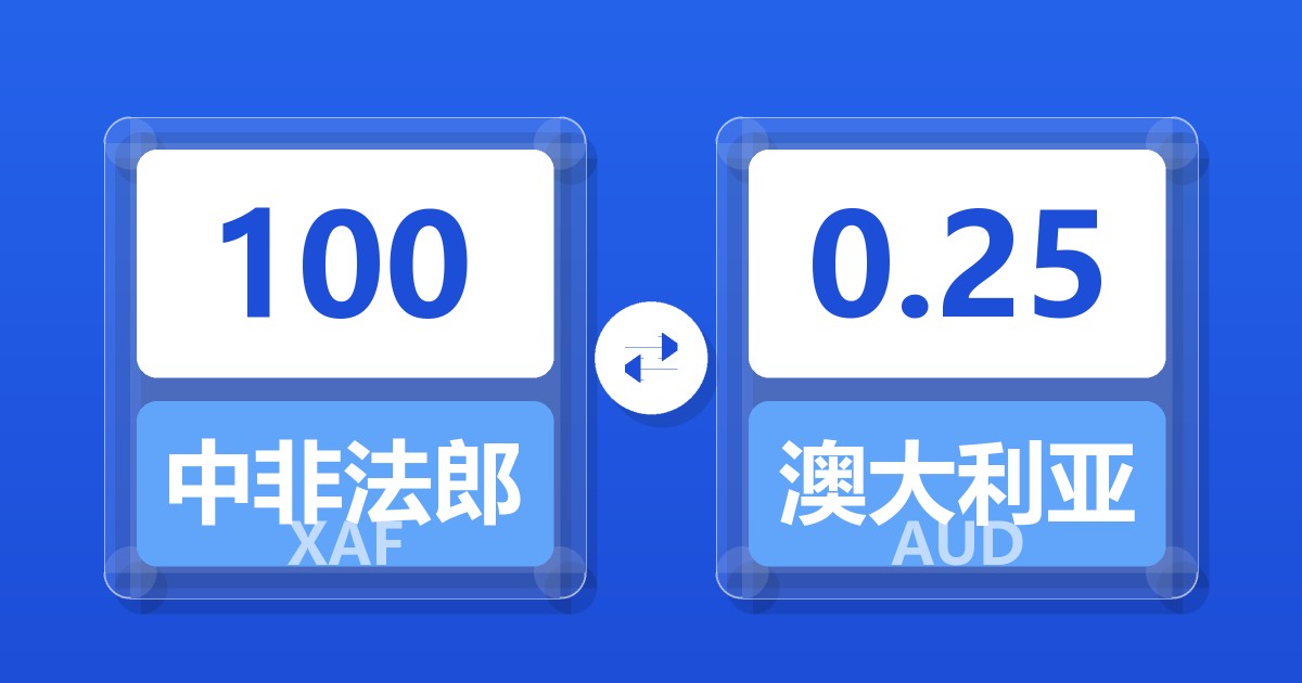 100 中非法郎 (XAF) = 0.25 澳大利亚元 (AUD)