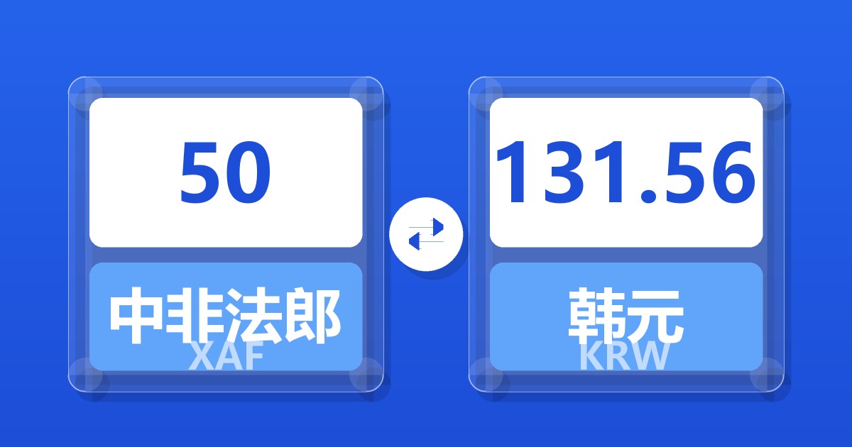 50 中非法郎 (XAF) = 131.56 韩元 (KRW)