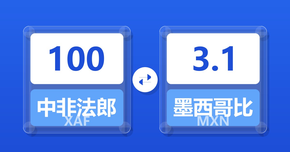 100 中非法郎 (XAF) = 3.10 墨西哥比索 (MXN)