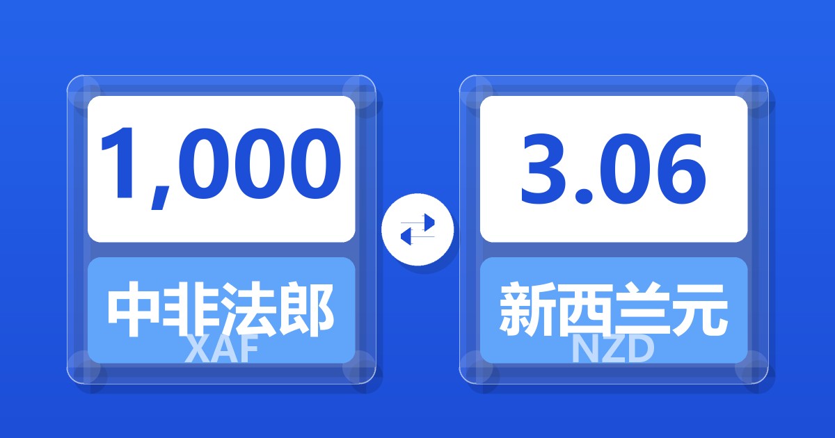1,000 中非法郎 (XAF) = 3.06 新西兰元 (NZD)