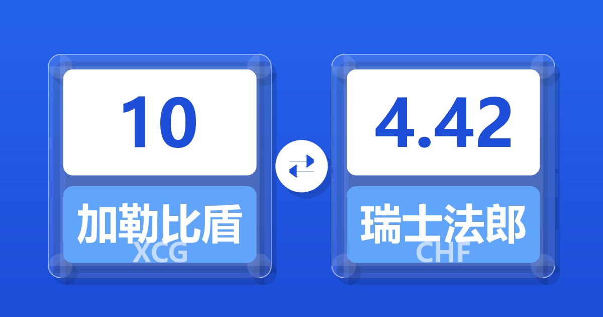 10 加勒比盾 (XCG) = 4.42 瑞士法郎 (CHF)