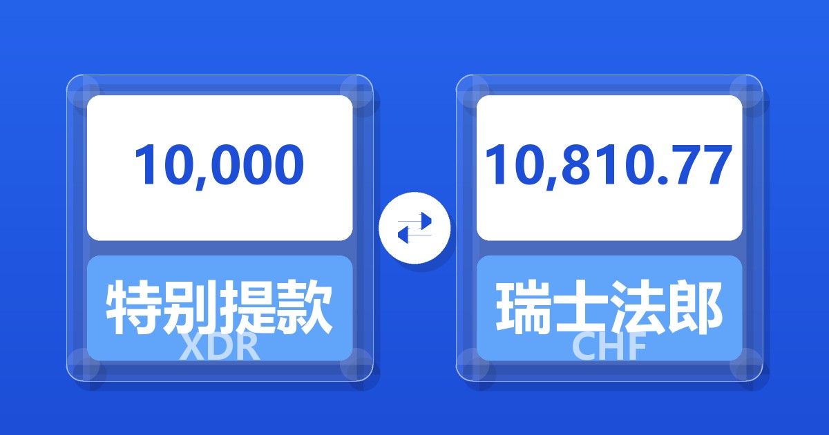 10,000 特别提款权 (XDR) = 10,833.22 瑞士法郎 (CHF)