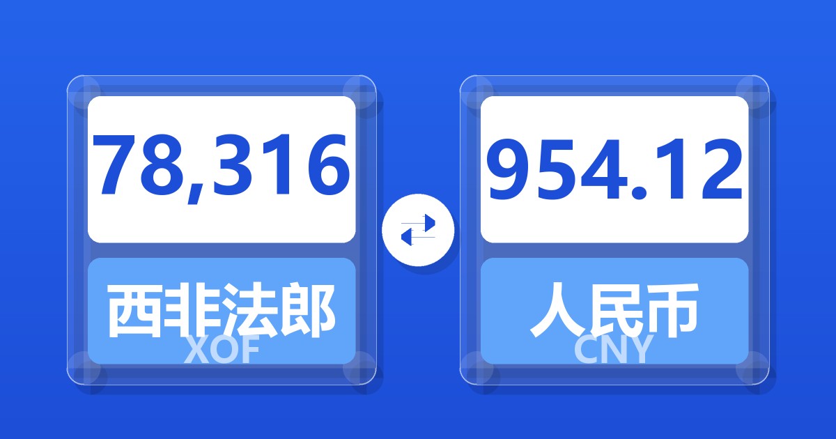 78,316 西非法郎 (XOF) = 954.12 人民币 (CNY)