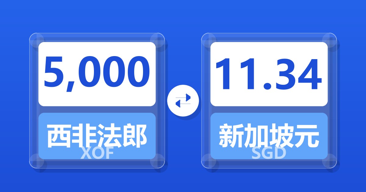 5,000 西非法郎 (XOF) = 11.34 新加坡元 (SGD)