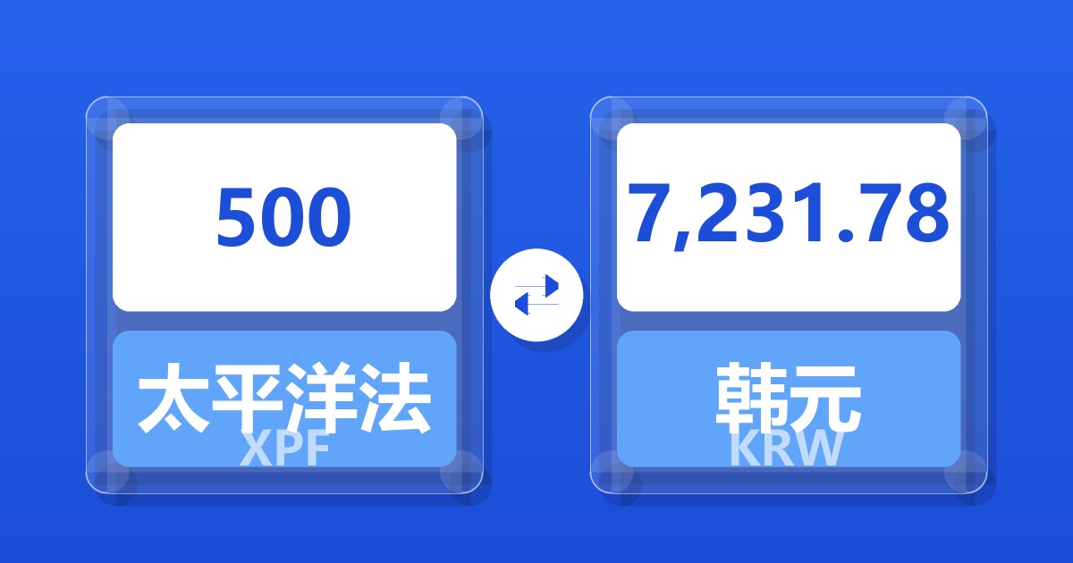 500 太平洋法郎 (XPF) = 7,231.78 韩元 (KRW)