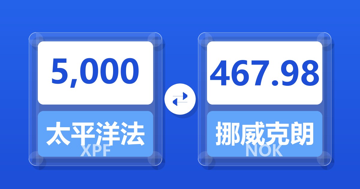 5,000 太平洋法郎 (XPF) = 467.98 挪威克朗 (NOK)