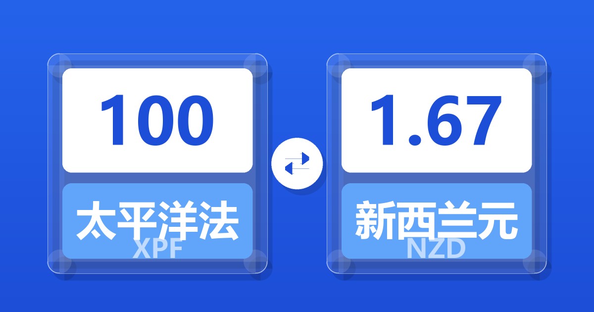 100 太平洋法郎 (XPF) = 1.68 新西兰元 (NZD)