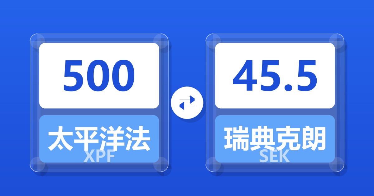 500 太平洋法郎 (XPF) = 45.52 瑞典克朗 (SEK)