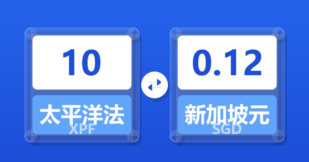 10 太平洋法郎 (XPF) = 0.12 新加坡元 (SGD)
