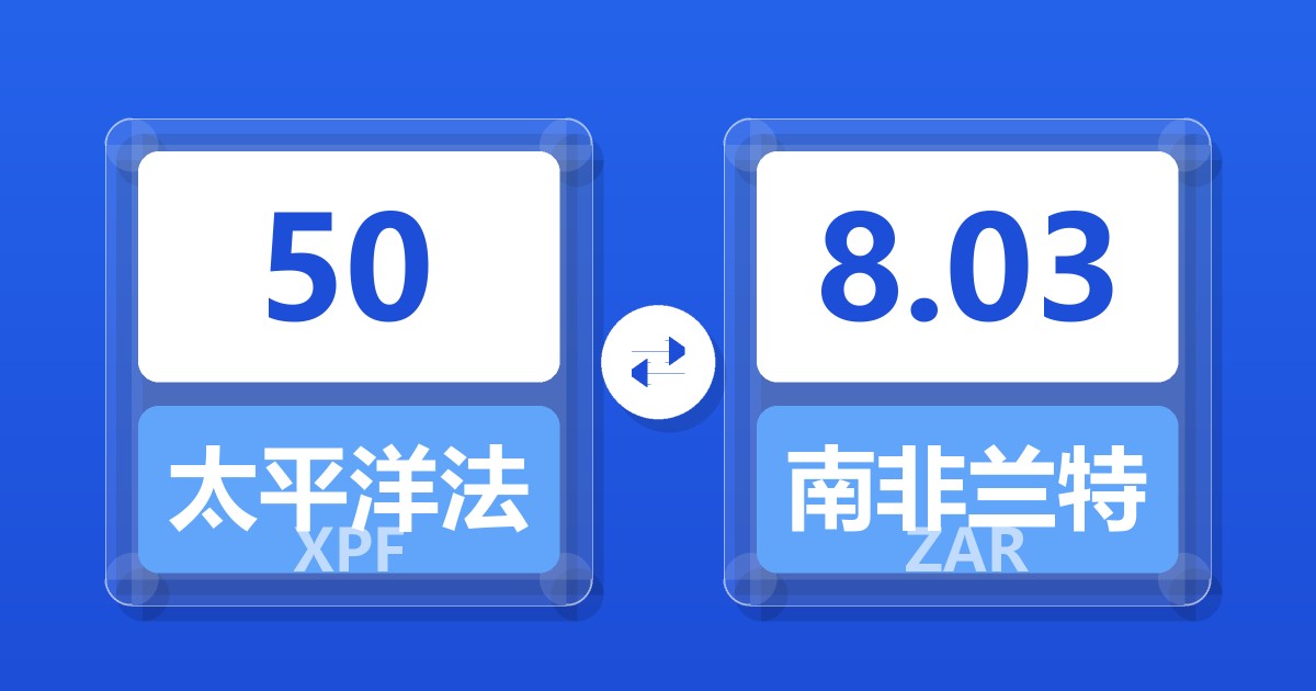 50 太平洋法郎 (XPF) = 8.02 南非兰特 (ZAR)