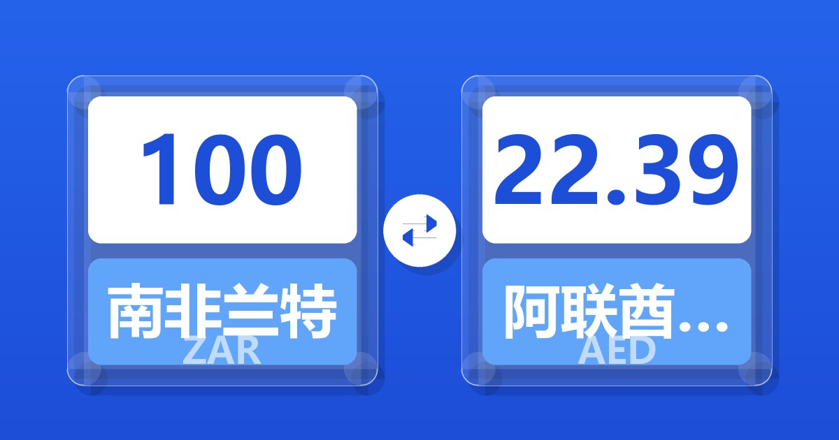 100 南非兰特 (ZAR) = 22.39 阿联酋迪拉姆 (AED)
