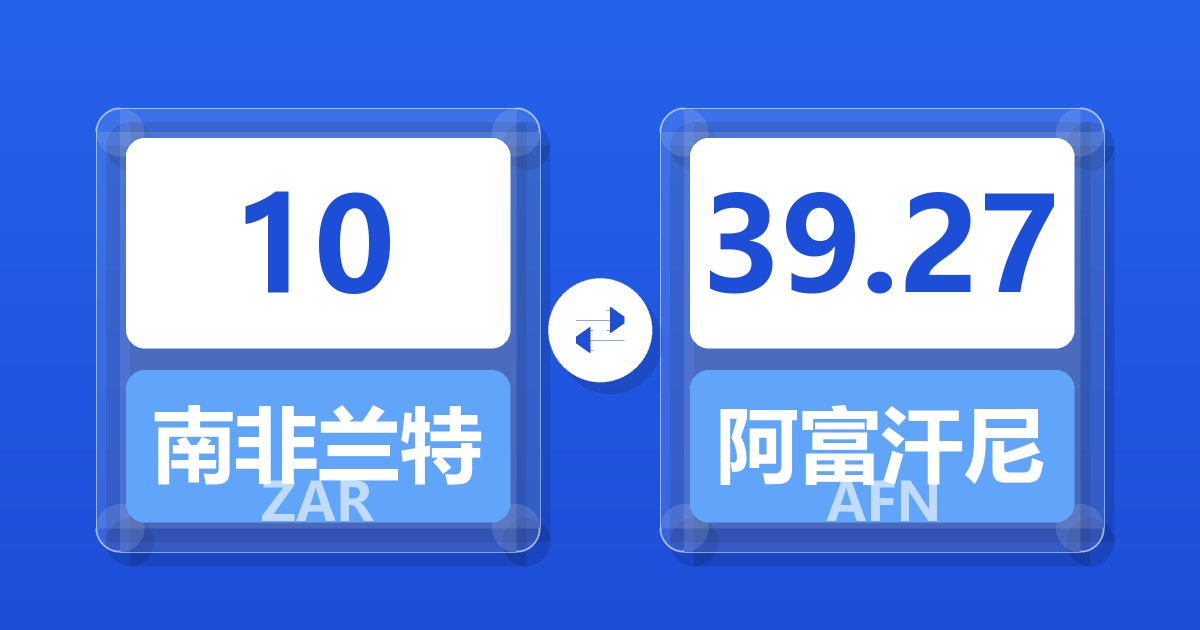 10 南非兰特 (ZAR) = 39.61 阿富汗尼 (AFN)