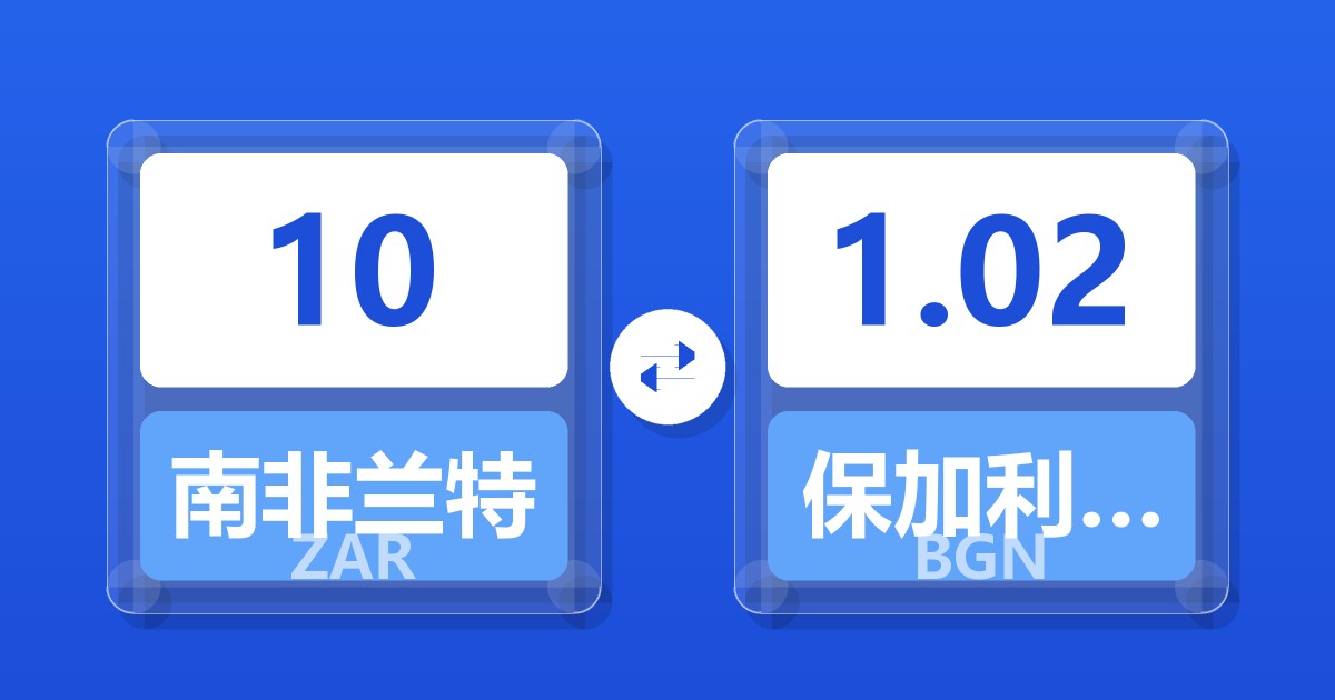 10 南非兰特 (ZAR) = 1.02 保加利亚列弗 (BGN)