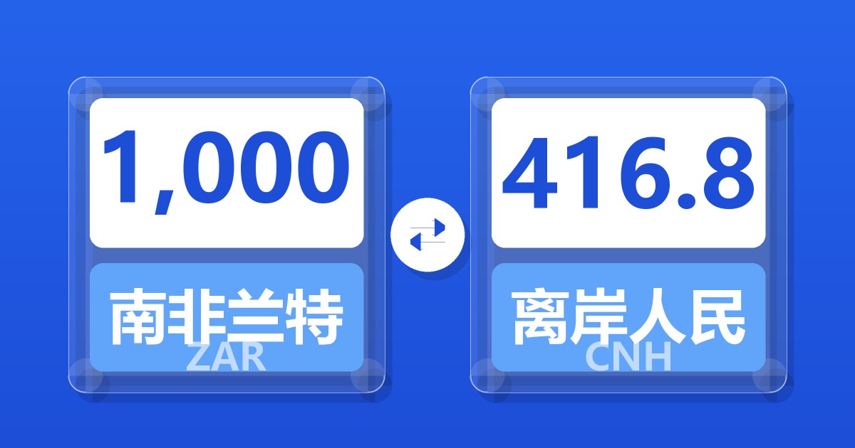 1,000 南非兰特 (ZAR) = 416.56 离岸人民币 (CNH)