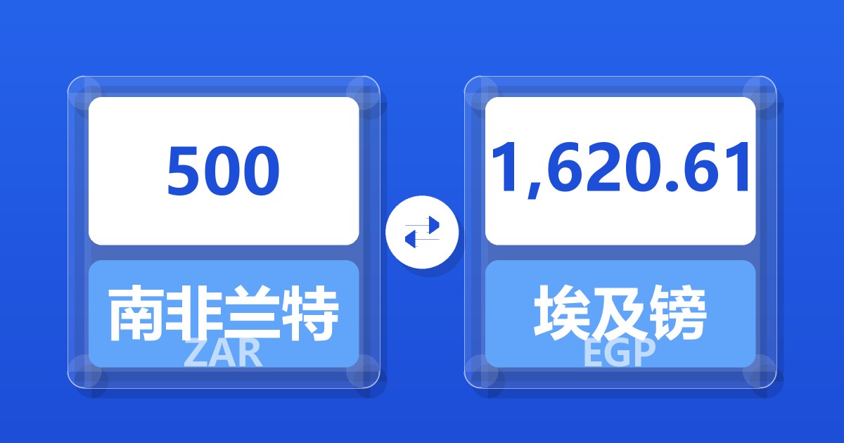 500 南非兰特 (ZAR) = 1,625.71 埃及镑 (EGP)