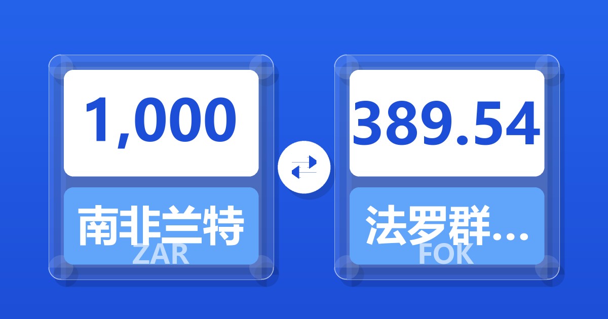 1,000 南非兰特 (ZAR) = 389.52 法罗群岛克朗 (FOK)