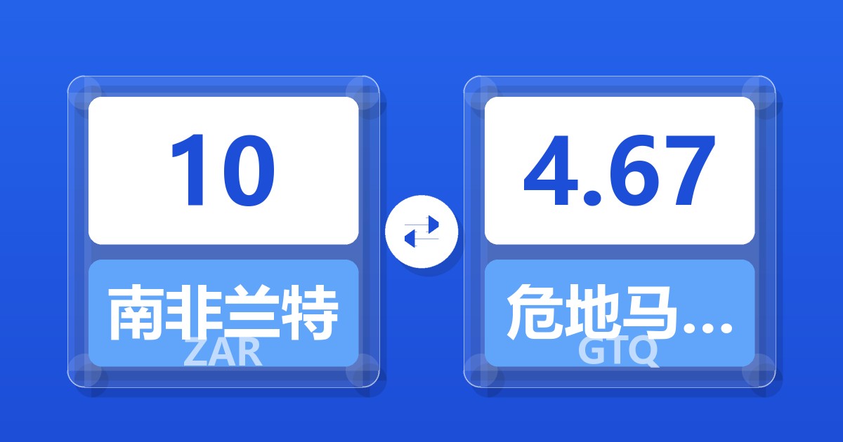 10 南非兰特 (ZAR) = 4.67 危地马拉格查尔 (GTQ)