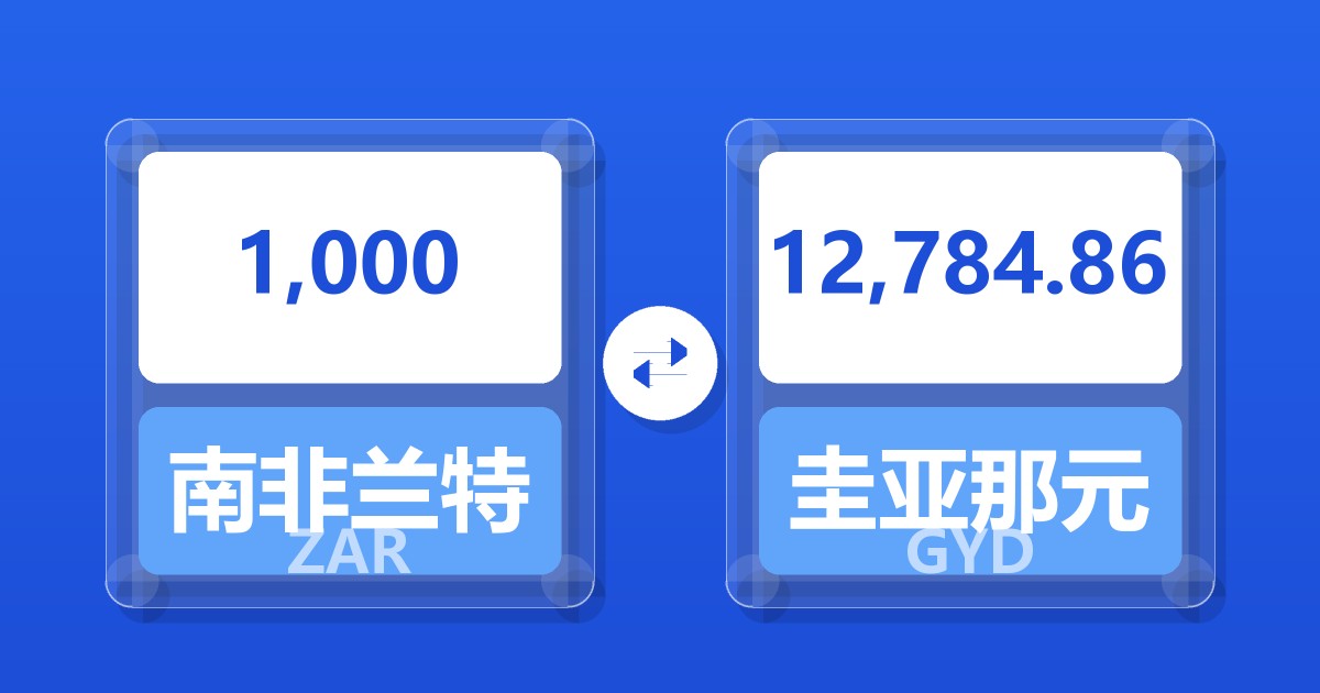 1,000 南非兰特 (ZAR) = 12,787.51 圭亚那元 (GYD)