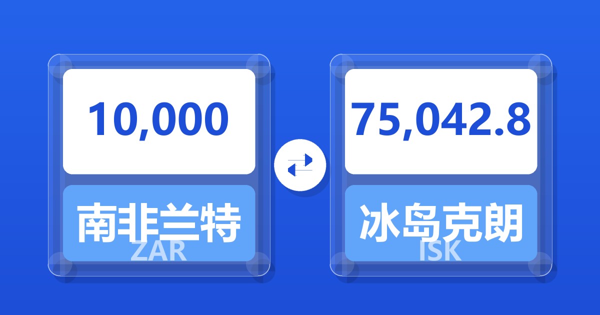 10,000 南非兰特 (ZAR) = 75,022.47 冰岛克朗 (ISK)