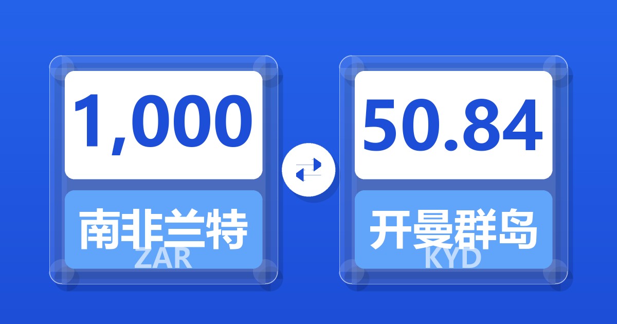 1,000 南非兰特 (ZAR) = 50.81 开曼群岛元 (KYD)