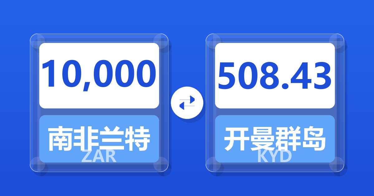 10,000 南非兰特 (ZAR) = 508.14 开曼群岛元 (KYD)