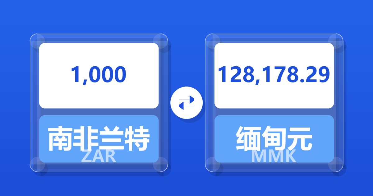 1,000 南非兰特 (ZAR) = 128,129.59 缅甸元 (MMK)