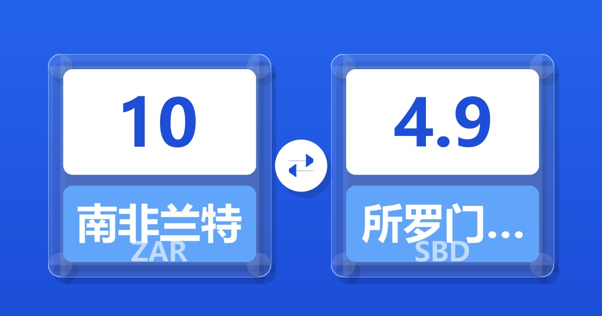 10 南非兰特 (ZAR) = 4.89 所罗门群岛元 (SBD)