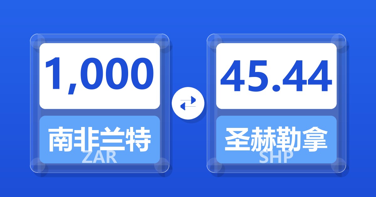 1,000 南非兰特 (ZAR) = 45.45 圣赫勒拿镑 (SHP)