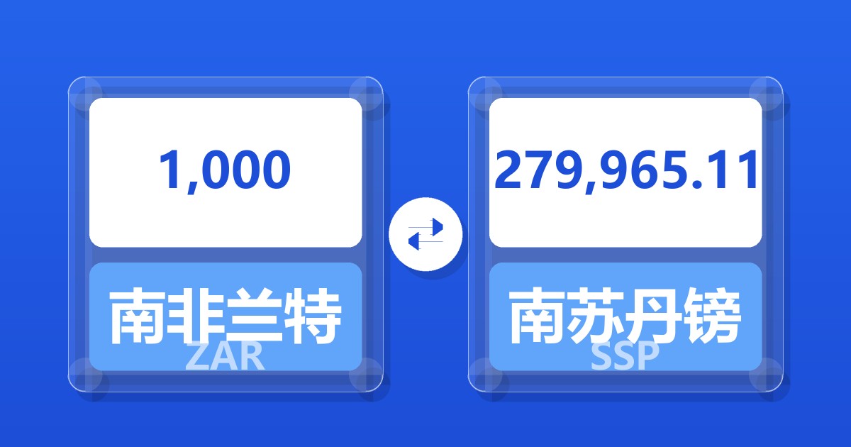 1,000 南非兰特 (ZAR) = 279,711.19 南苏丹镑 (SSP)