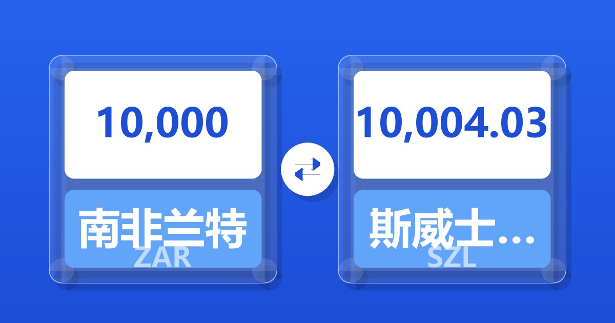 10,000 南非兰特 (ZAR) = 9,999.15 斯威士兰里兰吉尼 (SZL)