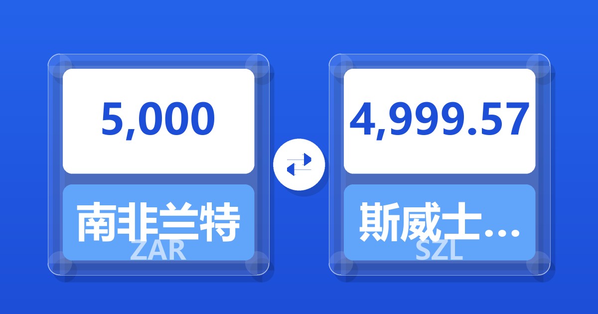 5,000 南非兰特 (ZAR) = 4,999.57 斯威士兰里兰吉尼 (SZL)