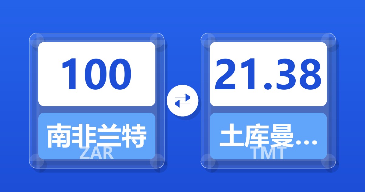 100 南非兰特 (ZAR) = 21.38 土库曼斯坦马纳特 (TMT)