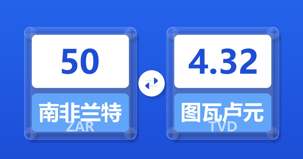 50 南非兰特 (ZAR) = 4.33 图瓦卢元 (TVD)