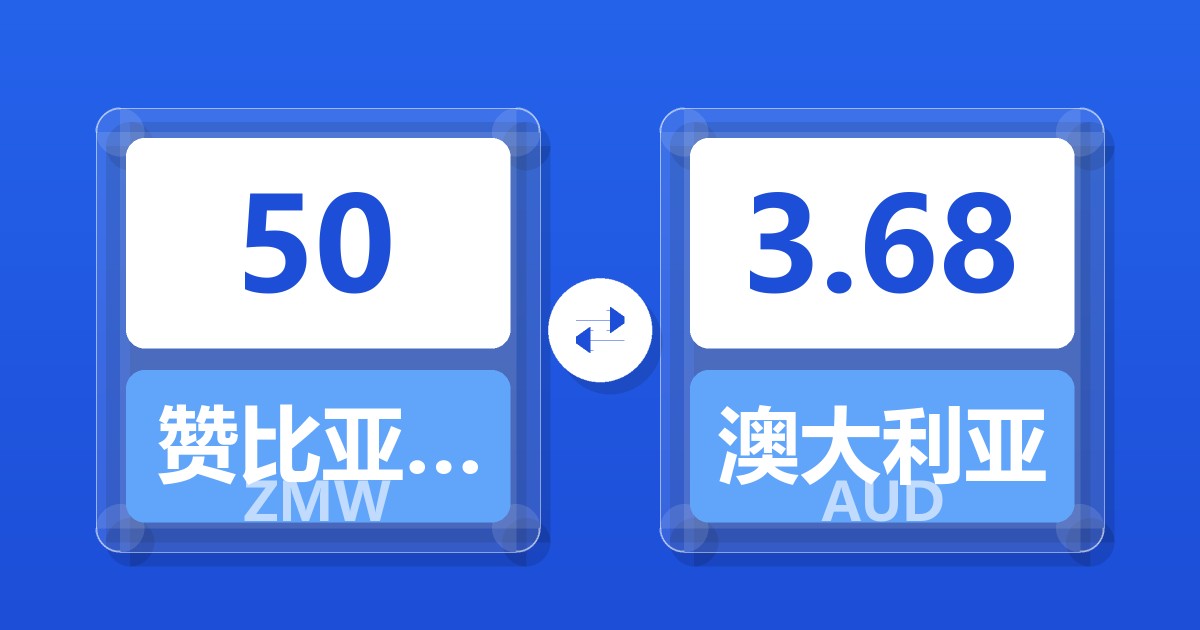 50 赞比亚克瓦查 (ZMW) = 3.68 澳大利亚元 (AUD)