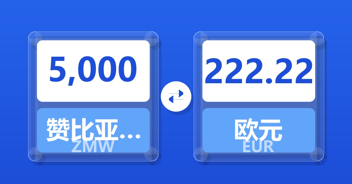 5,000 赞比亚克瓦查 (ZMW) = 221.78 欧元 (EUR)