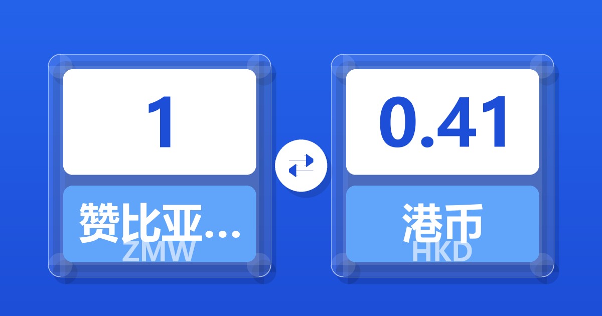 1 赞比亚克瓦查 (ZMW) = 0.41 港币 (HKD)