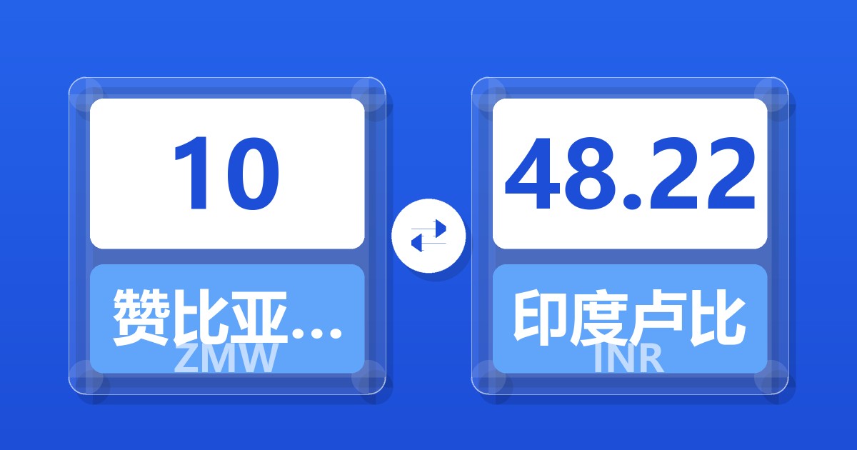 10 赞比亚克瓦查 (ZMW) = 47.95 印度卢比 (INR)