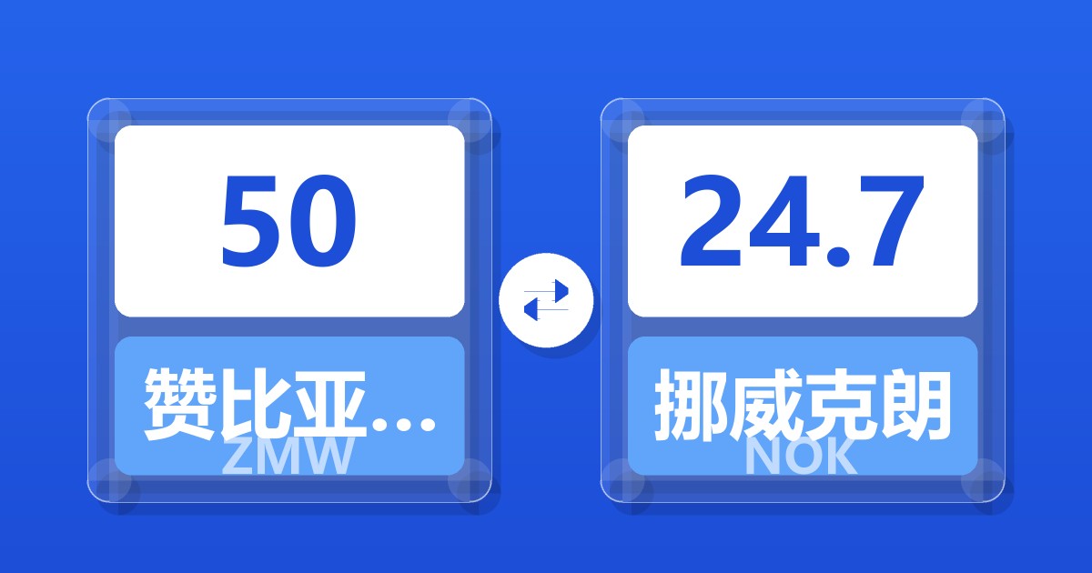 50 赞比亚克瓦查 (ZMW) = 24.77 挪威克朗 (NOK)