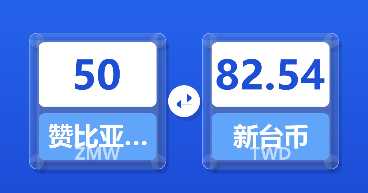 50 赞比亚克瓦查 (ZMW) = 82.24 新台币 (TWD)