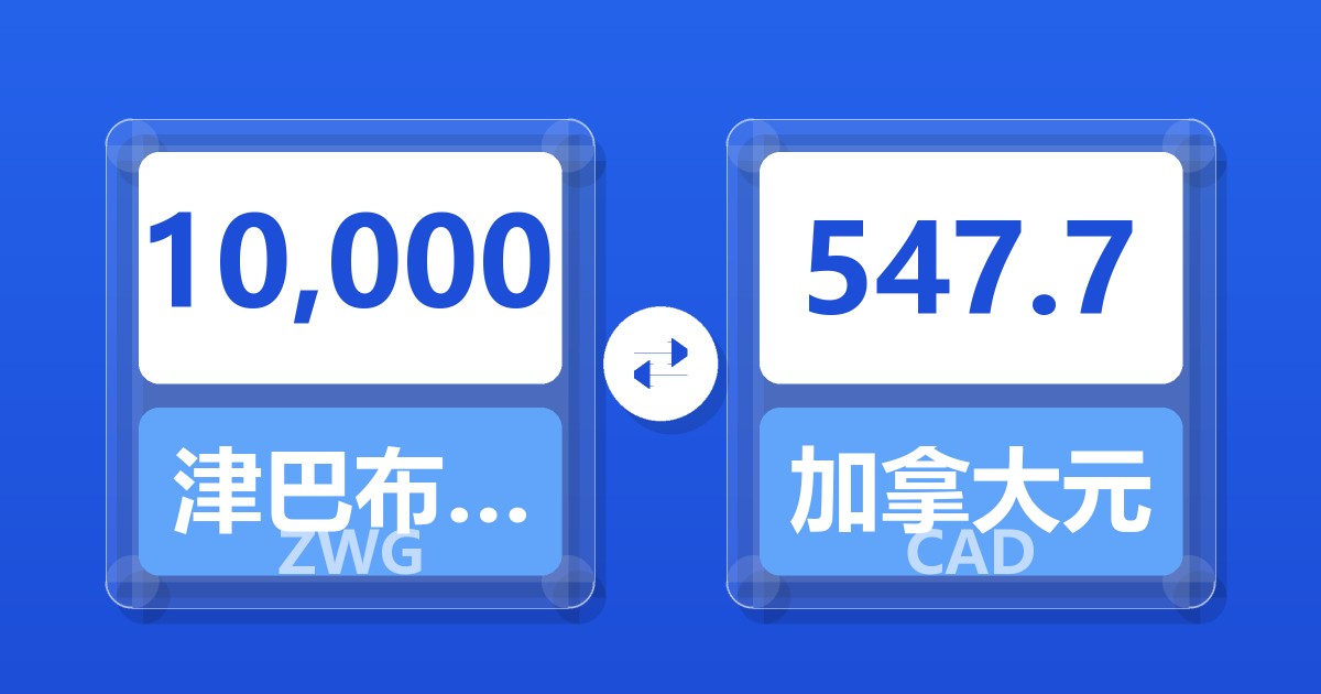 10,000 津巴布韦元(新) (ZWG) = 548.67 加拿大元 (CAD)