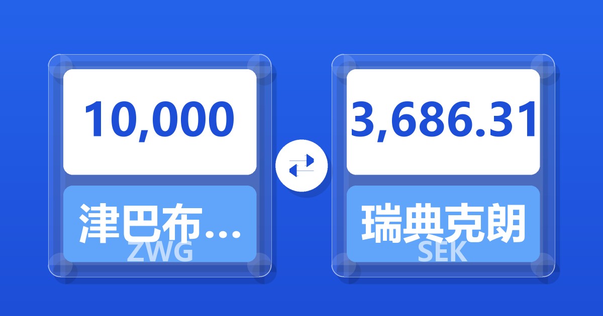 10,000 津巴布韦元(新) (ZWG) = 3,686.31 瑞典克朗 (SEK)