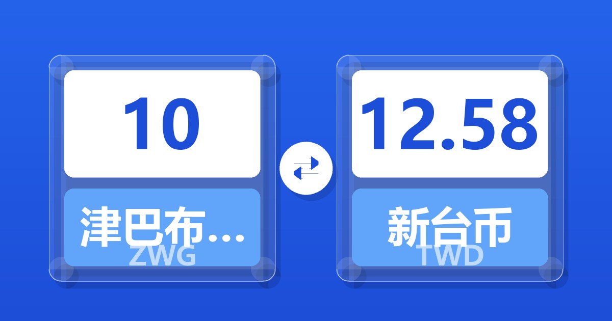 10 津巴布韦元(新) (ZWG) = 12.58 新台币 (TWD)