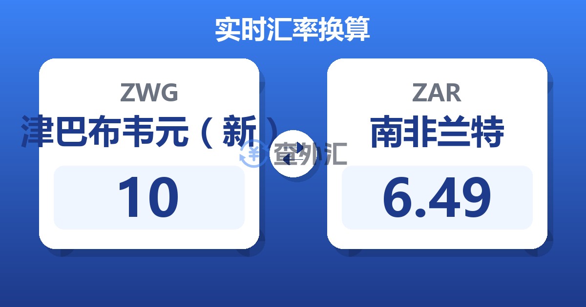 10 津巴布韦元(新) (ZWG) = 6.50 南非兰特 (ZAR)