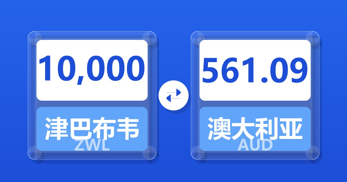 10,000 津巴布韦元 (ZWL) = 562.42 澳大利亚元 (AUD)